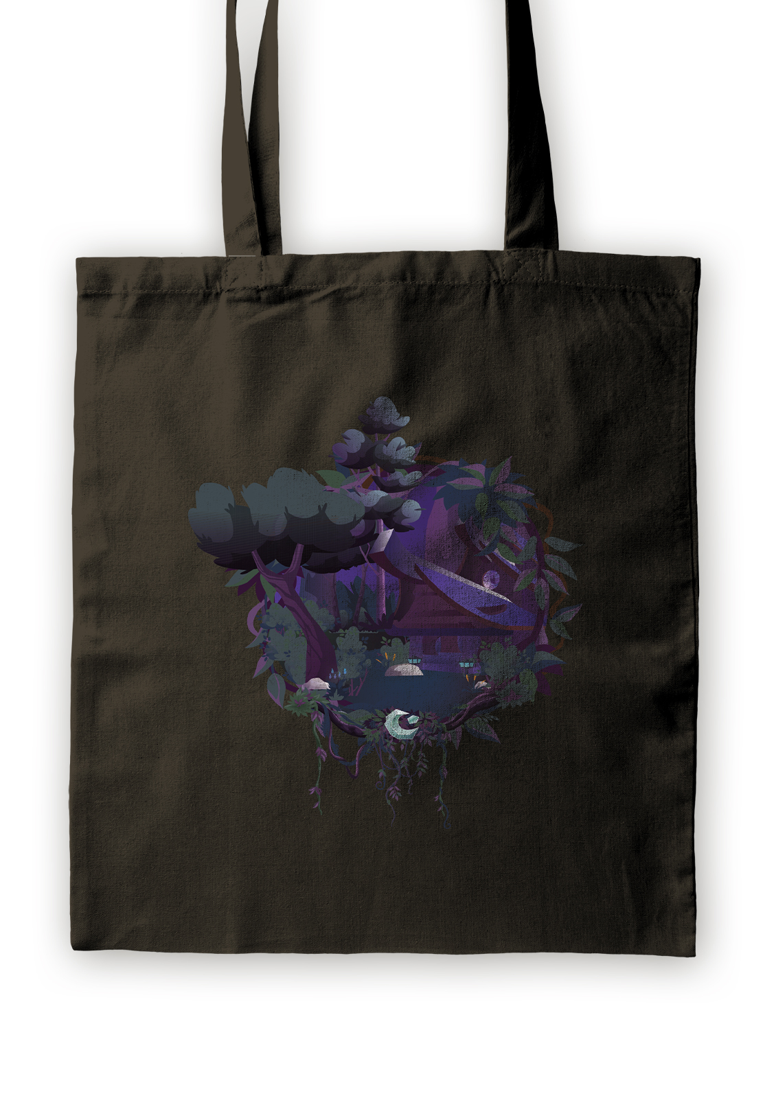 Шопер чорного кольору з зображенням Тельдрасіл у виконанні художниці Vetyra